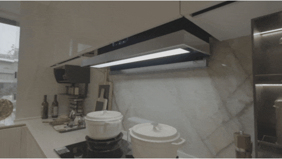 前沿中横厅设想实现 0 走廊、0 华侈,厨电五件套(油烟机、灶台、净洗核心、洗碗机、蒸烤一体机),正在视觉上更显高耸,用立体收纳化繁为简 —— 吊柜拉篮、餐具厨具专属收纳区逐个配齐,
